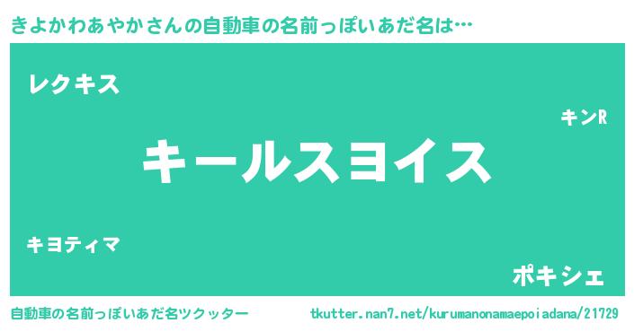 | 男性向けラノベタイトル風あだ名 | 『キヨカワアヤカスレイヤー』 |