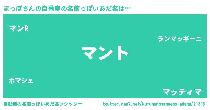 | 女子向けラノベタイトル風あだ名 | 『まっぽ様がみてる』『死神まっぽの再婚』 |