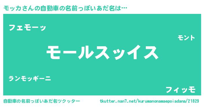 | 男性向けラノベタイトル風あだ名 | 『転生したらモッカだった件』 |