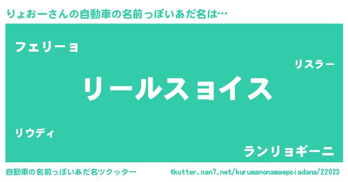 | 男性向けラノベタイトル風あだ名 | 『リョオースレイヤー』 |