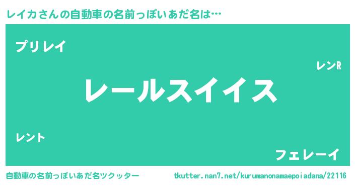 | 欧米人風あだ名 | 『トリンドルレイカ』『マイケルレイカ』 |