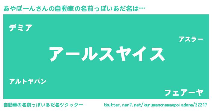 | 男性向けラノベタイトル風あだ名 | 『転生したらあやぽーんだった件』 |