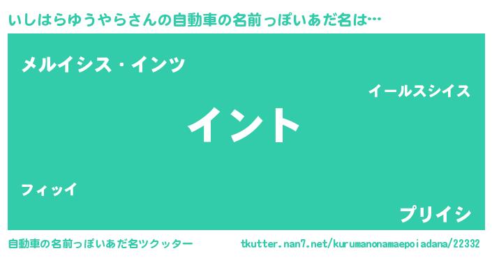 | ポケモン風あだ名 | 『ヒイシハラユウヤラ』『イシセウス』 |