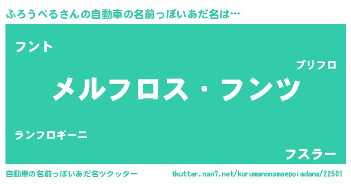 | 意味不明あだ名 | 『自称ふろうべる』『ペロリンふろうべる』 |