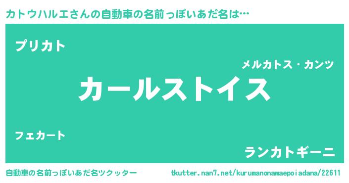 | 胡散臭い通販商品みたいなあだ名 | 『必ず成功するブレスレット…その名も「カトウハルエ」』 |