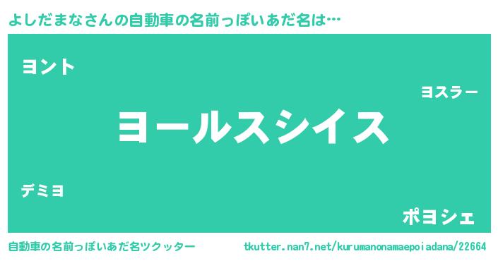 | 意味不明あだ名 | 『めかぶ科よしだまな属』 |
