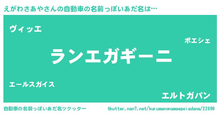 | 欧米人風あだ名 | 『アンジェラ・えがわさあや』 |