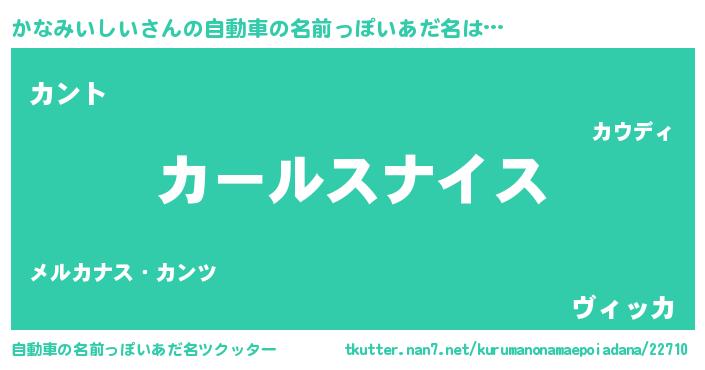 | 男性向けラノベタイトル風あだ名 | 『かなみいしい~年齢イコール彼女いない歴の魔法使い~』 |