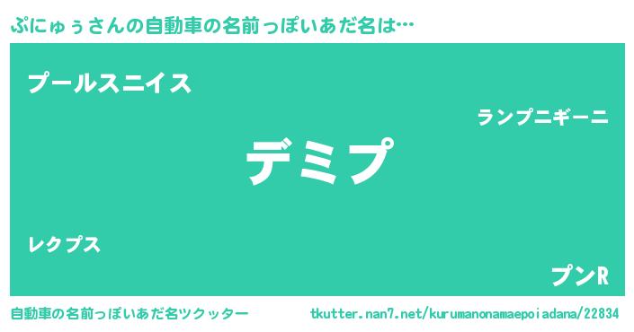 | 男性向けラノベタイトル風あだ名 | 『ぷにゅぅという概念が存在しない退屈な世界 』 |