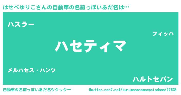 はせべゆりこさんの自動車の名前っぽいあだ名をツクッター!