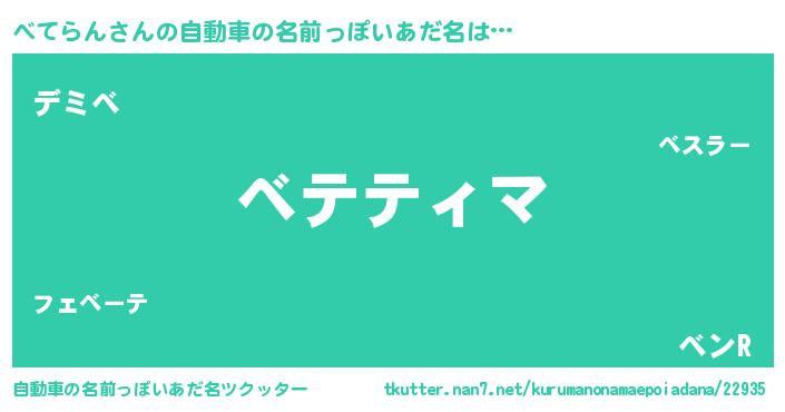| 意味不明あだ名 | 『ペロリンべてらん』『永久保存べてらん』 |