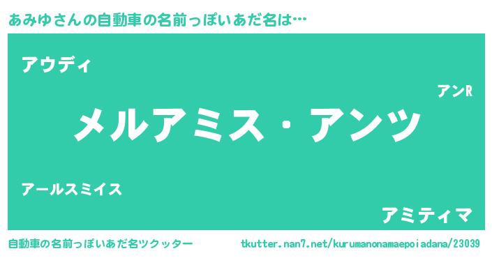 | 男性向けラノベタイトル風あだ名 | 『Re:あみゆから始める異世界生活』 |