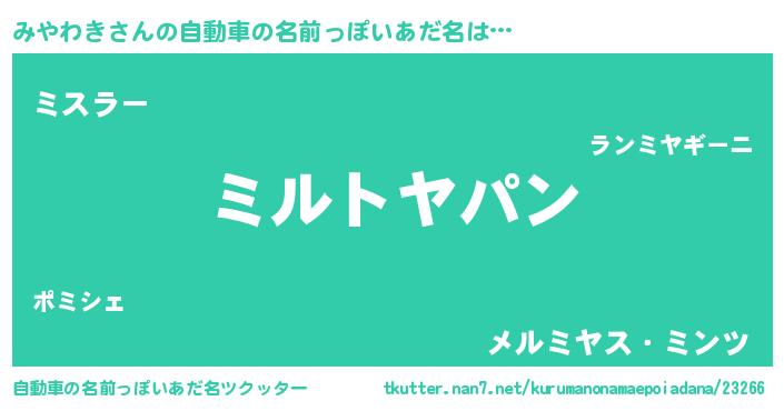 | 胡散臭い通販商品みたいなあだ名 | 『信頼と実績のサプリメント…その名も「みやわき」』 |