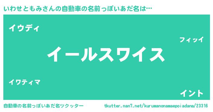 | 男性向けラノベタイトル風あだ名 | 『いわせともみ~年齢イコール彼女いない歴の魔法使い~』 |