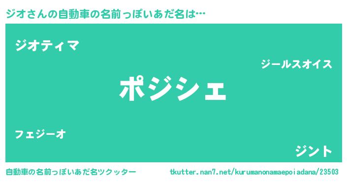 | 男性向けラノベタイトル風あだ名 | 『この素晴らしい世界にジオを!』 |