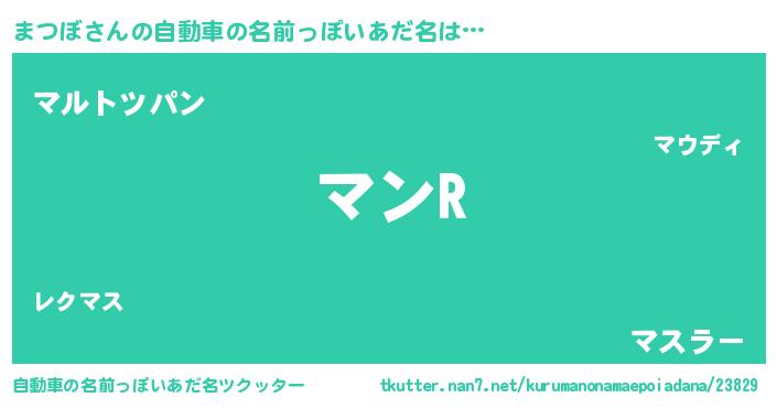 | 女子向けラノベタイトル風あだ名 | 『死神まつぼの再婚』『まつぼ伯爵の花嫁』 |
