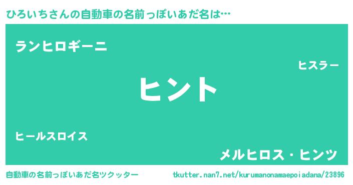| 男性向けラノベタイトル風あだ名 | 『ひろいちの嫁は女の子じゃないと思った?』 |