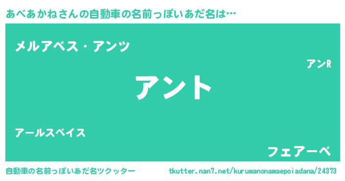 | 欧米人風あだ名 | 『ウサインあべあかね』 |