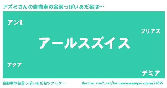 | 男性向けラノベタイトル風あだ名 | 『転生したらアズミだった件』 |