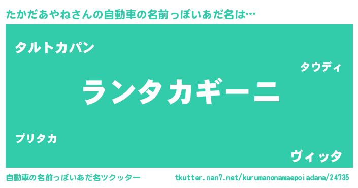 | 欧米人風あだ名 | 『アンジェラ・たかだあやね』 |