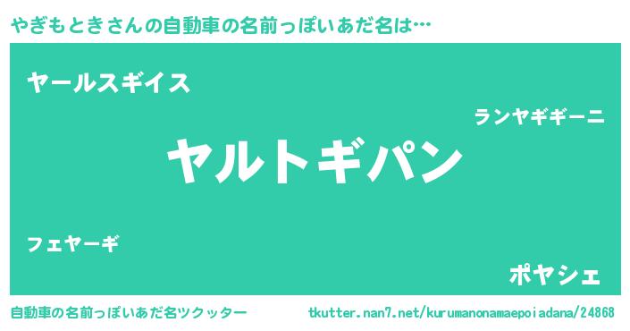 | 男性向けラノベタイトル風あだ名 | 『ダンジョンにやぎもときを求めるのは間違っているだろうか』 |