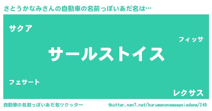 | ヘコむあだ名 | 『酢こんぶ』『さとうかなみ(遠い目)』 |