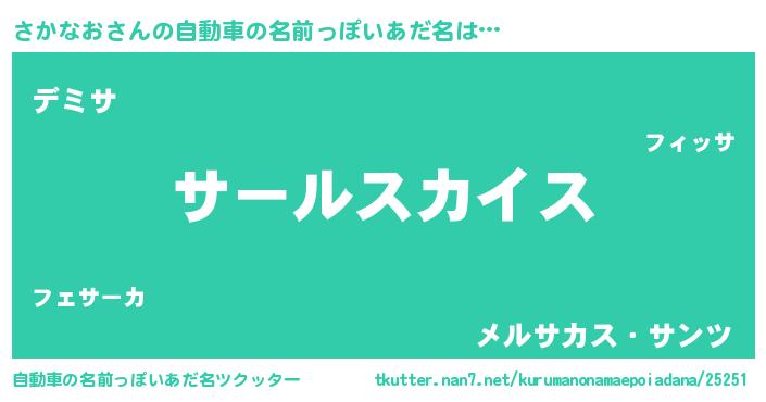 | 男性向けラノベタイトル風あだ名 | 『転生したらさかなおだった件』 |