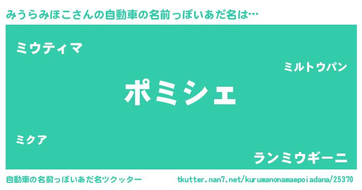 | 意味不明あだ名 | 『住所不定無職みうらみほこ(9歳)』 |