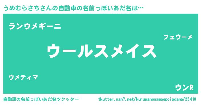 | 男性向けラノベタイトル風あだ名 | 『うめむらさち~年齢イコール彼女いない歴の魔法使い~』 |