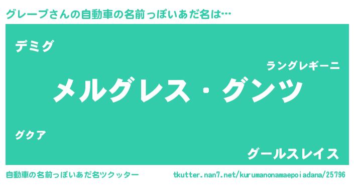 | 女子向けラノベタイトル風あだ名 | 『闇のグレープ』『グレープの契約王妃』 |