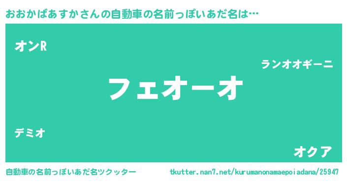 | 欧米人風あだ名 | 『おおかばあすか・ステッグマイヤー』 |