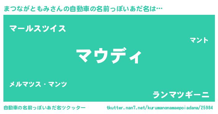 | 男性向けラノベタイトル風あだ名 | 『魔弾の王とまつながともみ』 |