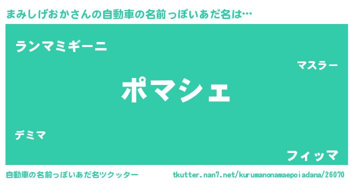 | 男性向けラノベタイトル風あだ名 | 『この素晴らしい世界にまみしげおかを!』 |
