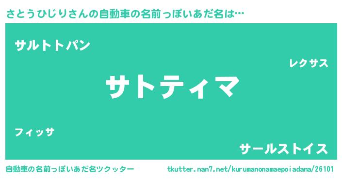 | ポケモン風あだ名 | 『サトチュウ』『ヒサトウヒジリ』 |