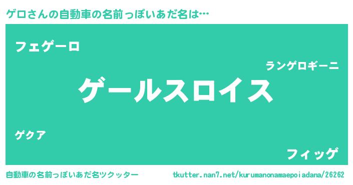 | 男性向けラノベタイトル風あだ名 | 『ゲロスレイヤー』『緋弾のゲロ』 |