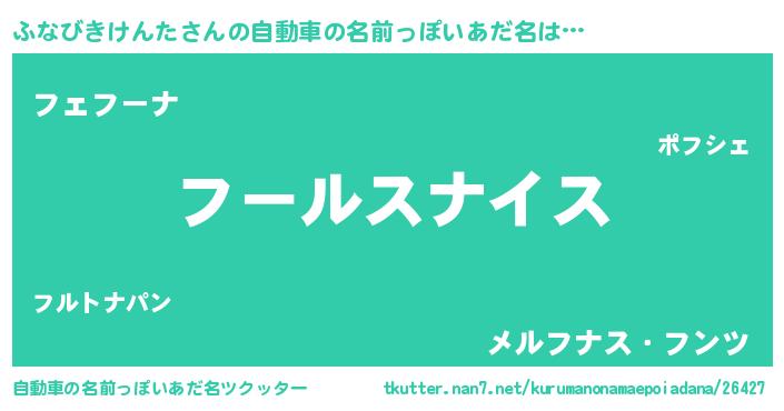| 男性向けラノベタイトル風あだ名 | 『転生したらふなびきけんただった件』 |