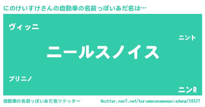 | 男性向けラノベタイトル風あだ名 | 『にのけいすけ~年齢イコール彼女いない歴の魔法使い~』 |