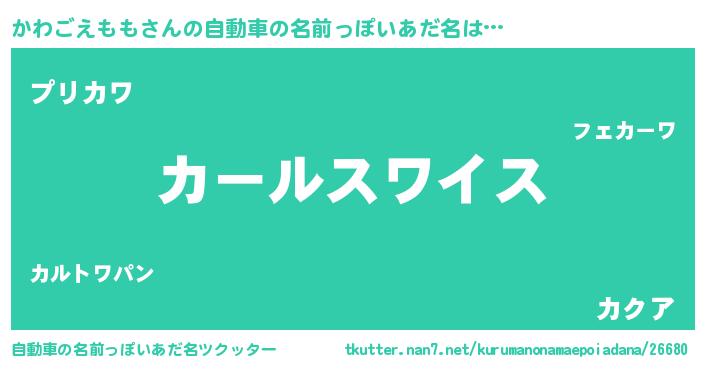 | 男性向けラノベタイトル風あだ名 | 『カワゴエモモスレイヤー』 |