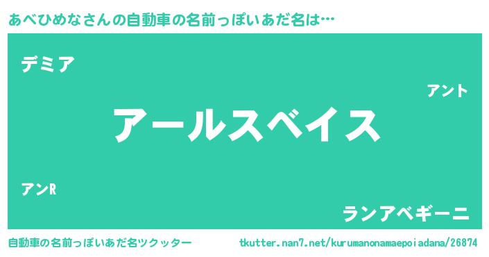 | 女子向けラノベタイトル風あだ名 | 『あべひめなの玉の輿計画!』 |