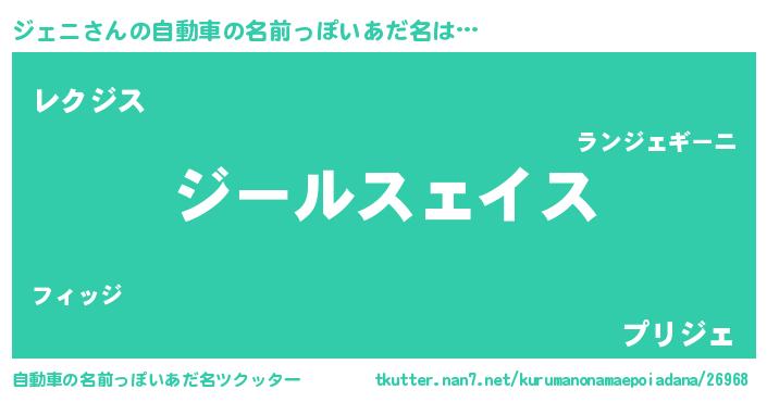 | 男性向けラノベタイトル風あだ名 | 『ジェニスレイヤー』『ジェニの憂鬱』 |