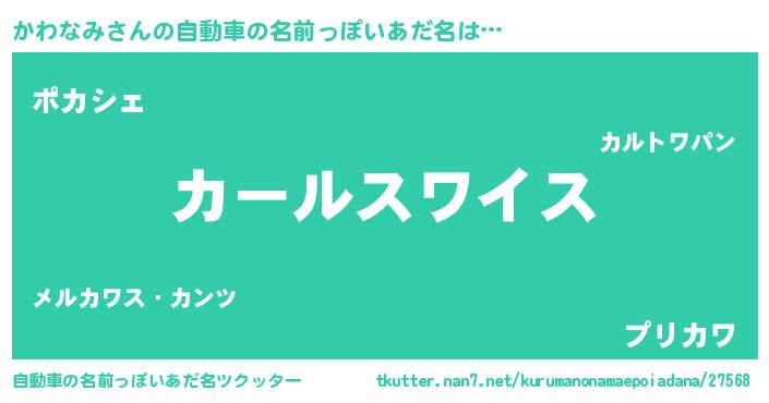 | 男性向けラノベタイトル風あだ名 | 『カワナミスレイヤー』『かわなみの憂鬱』 |
