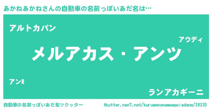 | ポケモン風あだ名 | 『アカセウス』『ヒアカネアカネ』 |