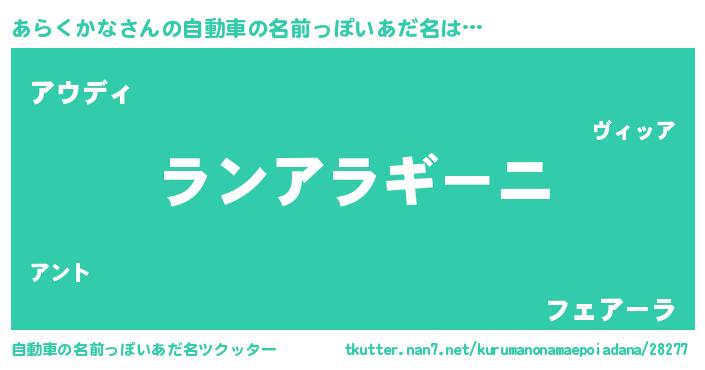 | 意味不明あだ名 | 『住所不定無職あらくかな(53歳)』 |