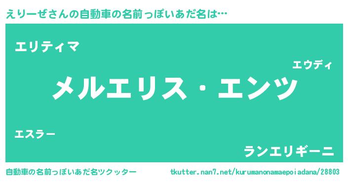 | 男性向けラノベタイトル風あだ名 | 『Re:えりーぜから始める異世界生活』 |