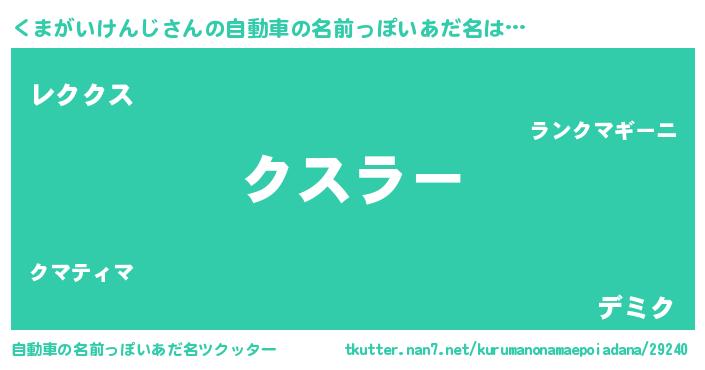| 欧米人風あだ名 | 『くまがいけんじクリステル』 |