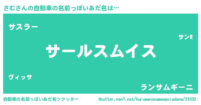 | 男性向けラノベタイトル風あだ名 | 『転生したらさむだった件』 |