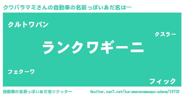 | ポケモン風あだ名 | 『クワゴンZ』『ヒクワバラマミ』 |