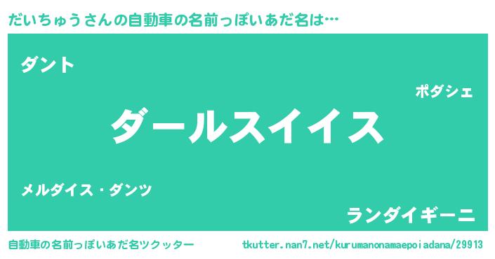| 男性向けラノベタイトル風あだ名 | 『ダイチュウスレイヤー』 |
