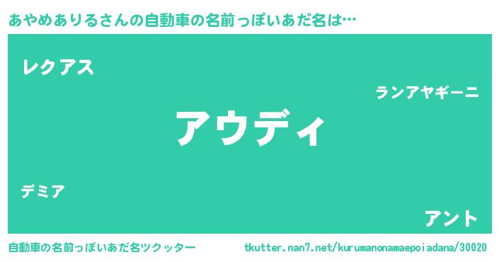 | 意味不明あだ名 | 『住所不定無職あやめありる(50歳)』 |