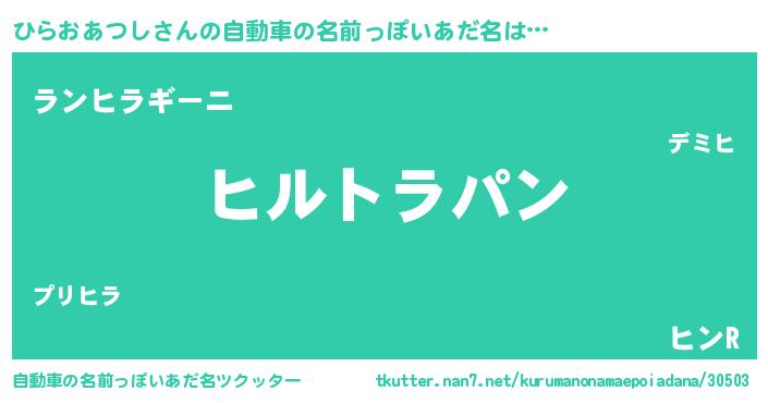 | 意味不明あだ名 | 『とにかく怪しいひらおあつし』 |